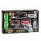 قاطرة واحدة، وسيارة ركاب، وعربة بالفحم، وسيارة شحن فارغة، وأجزاء مستقيمة منحنية من الطريق