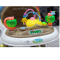 ✅ المقعد: مقعد مبطن وناعم باللون الأخضر وعليه نقوش ملونة ومبهجة (دوائر وأشكال) لتوفير أقصى قدر من الراحة والدعم للطفل أثناء الجلوس.