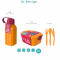 طقم لانش بوكس ام ديزاين بلاستيك 1.1 لتر + زجاجة 500 ملل + أدوات طعام، اورنج